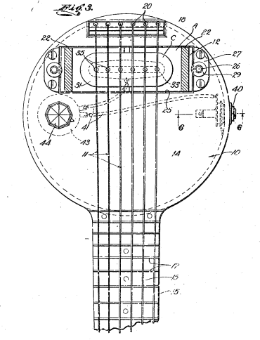 - the electromagnetic pickup (US2089171A) – the foundational technology, from before Hendrix was even born, that turned a vibrating string into an electrical signal. This made it possible to design guitars without resonance boxes but also paved the way for effects processors which change an instrument’s sound without modifying the instrument itself